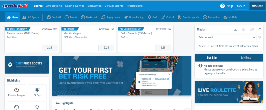 SunBet: One of the greatest in-play betting platforms in South Africa.